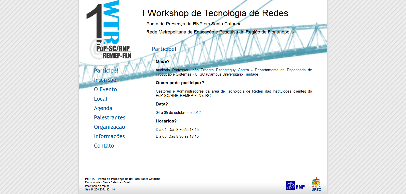 O PoP-SC realiza desde 2012 seu Workshop de Tecnologia de Redes – WTR.